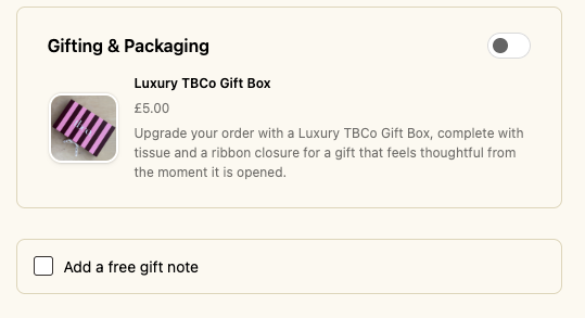 We offer one complimentary gift note at checkout. You can find the option to add this at the cart, under the delivery details.